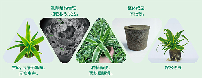 “土非土”基质是九游体育研发团队以高分子材料为主体框架结构,有机结合纳米材料研制出的新型基质产品,具有具有保水透气、根系不易腐烂,不含重金属、材料可降解,无病虫害、保障植物存活率,种植程序简便、预培育周期短,质地轻盈、使用寿命长等优势,已广泛应用于苗圃种植、立体绿化、边坡修复等领域。此次与泥炭“交汇”,期待共创绿色新未来。