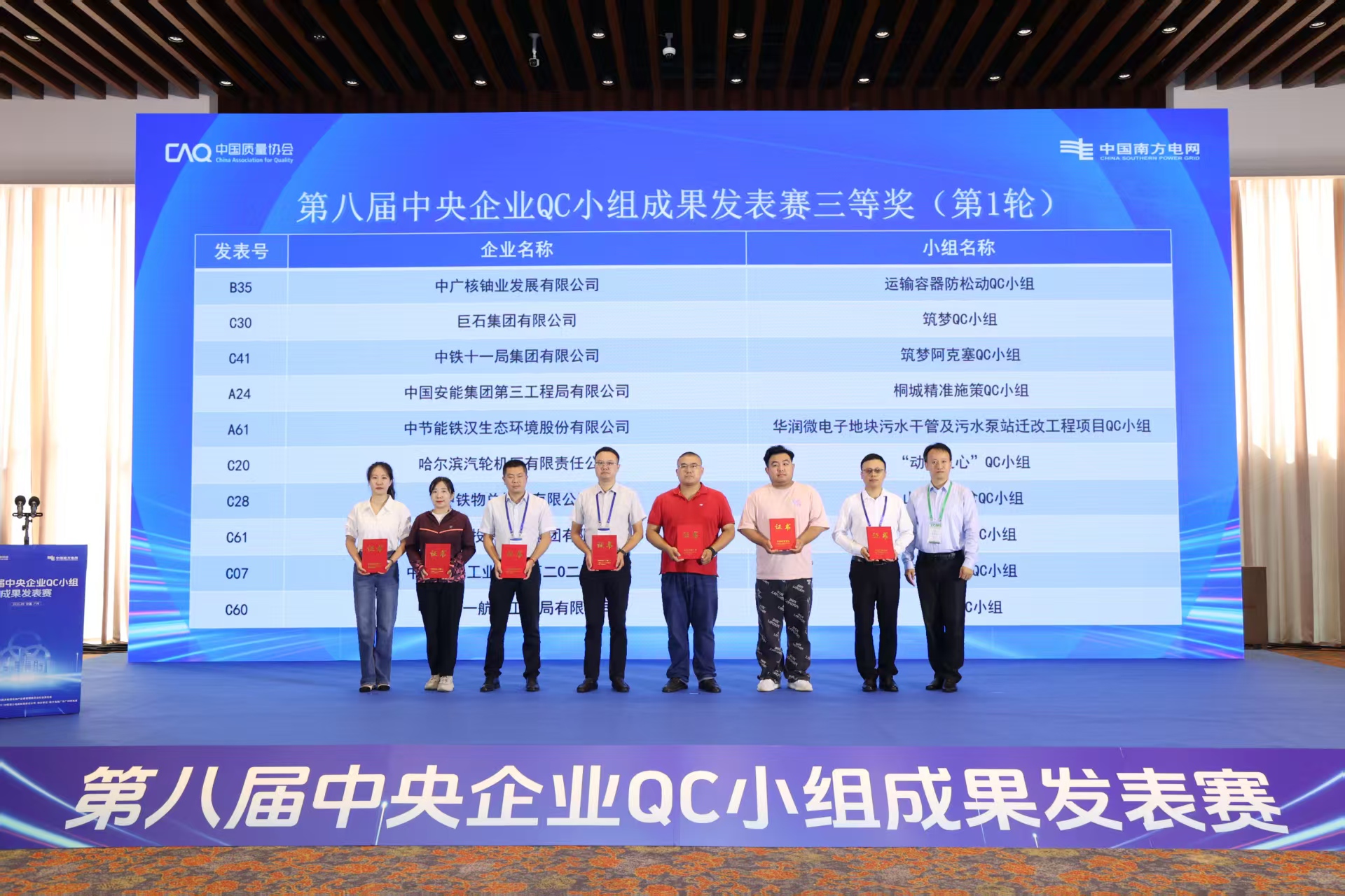 近日,由国务院国资委社会责任局指导、中国质量协会主办的第八届中央企业QC(质量管理)小组成果发表赛落幕。九游体育“华润微电子地块污水干管及污水泵站迁改工程QC小组”汇报的《提高沉井下沉到位合格率》课题,凭借出色的创新能力和显著实践成效,荣获大赛三等奖。